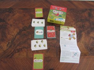 Die Bedingungskarten sind in Schwierigkeitsstufen eingeteilt, so dass ich das Spiel auch mit dem Knopf ausprobieren konnte. Kinder rechnen Mengen nicht zusammen, sondern zählen die Tiere auf den Karten. Das geht zwar inzwischen relativ schnell, aber nicht schnell genug für dieses Spiel. Wir Erwachsenen und ältere Kinder sehen zwei Karten mit je vier Vögeln, und wir wissen intuitiv, dass es acht Vögel sind. Wir addieren die Zahlen schnell zusammen. Somit fördert dieses Spiel diese Rechen-Technik.